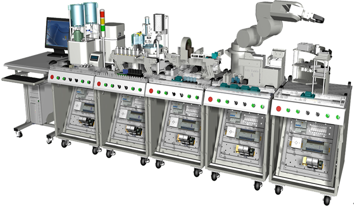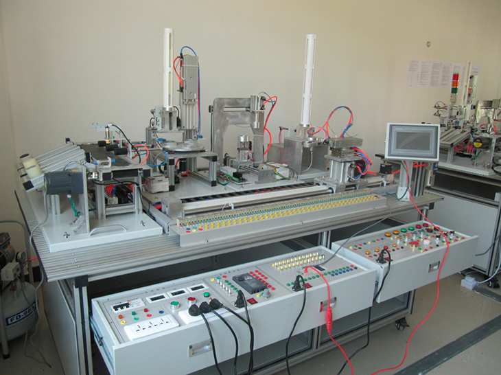機電一體化技術(shù)實訓(xùn)設(shè)備是指機械技術(shù)、電工電子技術(shù)、微電子技術(shù)、信息技術(shù)、傳感器技術(shù)、接口技術(shù)、信號變換技術(shù)等多種技術(shù)進行有機地結(jié)合,并綜合應(yīng)用到實際中去的技能實訓(xùn)綜合技術(shù),現(xiàn)代化的自動生產(chǎn)設(shè)備幾乎可以說都是機電一體化的設(shè)備。自動化生產(chǎn)線實訓(xùn)考核系統(tǒng),可以培養(yǎng)和提高學(xué)生專業(yè)綜合能力,是一種重要的實訓(xùn)設(shè)備。自動化生產(chǎn)線實訓(xùn)系統(tǒng)、基于PLC技術(shù)的自動化生產(chǎn)線實訓(xùn)考核系統(tǒng),可以培養(yǎng)和提高學(xué)生專業(yè)綜合能力,是一種重要的實訓(xùn)設(shè)備。自動化生產(chǎn)線實訓(xùn)系統(tǒng)整體包括自動供料、檢測傳輸、檢測加工、自動裝配、自動分揀等工序,很好的將機械技術(shù)、微電子技術(shù)、電工電子技術(shù)、傳感測試技術(shù)、接口技術(shù)、信息變換技術(shù)、網(wǎng).絡(luò)通信技術(shù)等多種技術(shù)有機地結(jié)合。該系統(tǒng)中自動分揀站的設(shè)計過程,包括系統(tǒng)硬件設(shè)計、PLC控制設(shè)計和程序設(shè)計方法。現(xiàn)代化的自動生產(chǎn)設(shè)備的最大特點是它的綜合性和系統(tǒng)性,在這里,機械技術(shù)、微電子技術(shù)、電工電子技術(shù)、傳感測試技術(shù)、接口技術(shù)、信息變換技術(shù)、網(wǎng)絡(luò)通信技術(shù)等多種技術(shù)有機地結(jié)合,并綜合應(yīng)用到生產(chǎn)設(shè)備中:而系統(tǒng)性指的是,生產(chǎn)線的傳感檢測、傳輸與處理、控制、執(zhí)行與驅(qū)動等機構(gòu)在微處理單元的控制下協(xié)調(diào)有序地工作,有機地融合在一起?删幊绦蚩刂破(PLC)以其高抗干擾能力、高可靠性、高性能價格比且編程簡單而廣泛地應(yīng)用在現(xiàn)代化的自動生產(chǎn)設(shè)備中,擔(dān)負著生產(chǎn)線的大腦一微 處理單元的角色。因此,培養(yǎng)掌握機電一體化技術(shù),掌握PLC技術(shù)及PLC網(wǎng)絡(luò)技術(shù)的技術(shù)人材是當(dāng)務(wù)之急。而一套基于PLC技術(shù)的自動化生產(chǎn)線實訓(xùn)考核設(shè)備可以模擬一個與實際生產(chǎn)情況+分接近的控制過程,使學(xué)習(xí)者得到一個非常接近于實際的教學(xué)設(shè)備環(huán)境,從而縮短了理論教學(xué)與實際應(yīng)用之間的距離。自動分揀站需完成對上一單元送來的已加工、裝配的工件進行分揀。使不同顏色的工件從不同的料槽分流的功能。當(dāng)輸送站送來工件放到傳送帶上并為入料口光電傳感器檢測到時,即啟動變頻器,工件開始送入分揀區(qū)進行分揀。上海碩博弘揚大國工匠精神, 發(fā)展職業(yè)教育,應(yīng)用教學(xué)設(shè)備,為企業(yè)培養(yǎng)高技能人才,而專業(yè)生產(chǎn):光機電一體化(自動生產(chǎn)線)實訓(xùn)裝置、灌裝自動化生產(chǎn)線實訓(xùn)裝置、工業(yè)自動生產(chǎn)線實訓(xùn)裝置 、工業(yè)控制模擬實訓(xùn)裝置 、機電一體化組合實訓(xùn)平臺 、機電一體化綜合實訓(xùn)考核裝置、自動化生產(chǎn)安裝與調(diào)試實訓(xùn)裝置 、光機電一體化高速分揀實訓(xùn)系統(tǒng) 、典型機電設(shè)備安裝與控制實訓(xùn)裝置、模塊式柔性自動環(huán)形生產(chǎn)線實驗系統(tǒng)(帶機器人工程型)、立體停車庫實物教學(xué)實驗裝置、機電一體化柔性生產(chǎn)線加工實訓(xùn)系統(tǒng)(5站)、網(wǎng)絡(luò)型模塊式柔性自動化生產(chǎn)線實驗系統(tǒng)、模塊式柔性自動環(huán)形生產(chǎn)線實驗系統(tǒng)(工程型)、柔性生產(chǎn)制造實驗系統(tǒng)(工程型)、現(xiàn)代物流倉儲自動化實驗系統(tǒng)、運動實訓(xùn)裝置、循環(huán)搬運自動控制實訓(xùn)裝置、平面雙軸運行控制實訓(xùn)裝置、工業(yè)機械手實訓(xùn)裝置、物料分揀實訓(xùn)裝置、機械手實訓(xùn)裝置 、立體倉庫實訓(xùn)裝置、十字路口交通燈實訓(xùn)系統(tǒng)、機電液氣一體化綜合實訓(xùn)裝置、光機電一體化高速分揀實訓(xùn)系統(tǒng)、步進伺服控制綜合實訓(xùn)平臺、光機電氣一體化控制實訓(xùn)系統(tǒng)、 光機電一體化綜合實訓(xùn)考核裝置、光機電一體化實訓(xùn)考核裝置、光機電一體化實訓(xùn)考核裝置、光機電氣一體化控制實訓(xùn)系統(tǒng)、自動生產(chǎn)線拆裝與調(diào)試實訓(xùn)裝置、柔性自動化生產(chǎn)線實訓(xùn)系統(tǒng)。