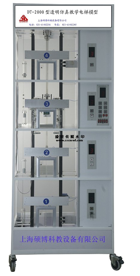 上海碩博公司的DT系列透明電梯是根據(jù)最常見的升降式電梯結(jié)構(gòu),采用鋼管焊接一體而成,表面經(jīng)過磷化噴塑處理、具有良好的結(jié)構(gòu)剛性。為了便于教學(xué),電梯主要機(jī)構(gòu)部件均采用透明有機(jī)材料制成 (包括:限速器、轎廂、層門及門廳立面、轎門、轎廂、機(jī)房底板、導(dǎo)軌支架……)為了使電梯運(yùn)行控制更加精密可靠逼真,設(shè)計(jì)了與實(shí)際電梯比例縮小的鋁合金轎廂對(duì)重導(dǎo)軌、及轎門門機(jī)導(dǎo)軌、層門導(dǎo)軌。
