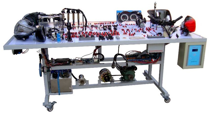 汽車電氣設備實訓室。汽車電器設備實訓室包含有汽車燈光系統(tǒng)、車載網(wǎng)絡系統(tǒng)、全車電器系統(tǒng)、汽車啟動系統(tǒng)、汽車空調(diào)系統(tǒng)、全車線路試驗臺、等實訓教學設備。該實訓室可以承擔《汽車構造》、《汽車電器設備》、《汽車電控系統(tǒng)》、《汽車檢測與診斷》等課程的實踐教學任務。可以用于研究、分析全車電器系統(tǒng)、燈光系統(tǒng)、儀表系統(tǒng)等電器設備的電路及功能。利用這些系統(tǒng)進行實踐教學,使學生熟悉汽車電器的結構和工作原理,掌握各個系統(tǒng)的基本組成電路,掌握主要電路的檢測方法和系統(tǒng)的故障特征,從而具有一定的檢測和調(diào)校能力。
