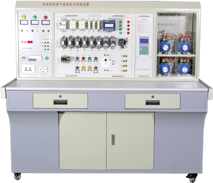 機(jī)床電氣控制實(shí)訓(xùn)室設(shè)備是機(jī)電設(shè)備維修與管理、電氣自動化技術(shù)等專業(yè)學(xué)生的實(shí)訓(xùn)場所,通過實(shí)驗(yàn)、實(shí)訓(xùn),使學(xué)生掌握工廠常用的各類型設(shè)備的電路維護(hù)檢修。如鉆床控制電路、車床控制電路、銑床控制電路、磨床控制電路及鏜床控制電路等。主要產(chǎn)品有普通車床、萬能銑床、萬能外圓磨床實(shí)訓(xùn)考核裝置,可開展機(jī)床常用電器及選擇、機(jī)床繼電器控制電路的基本環(huán)節(jié)、典型機(jī)床繼電器控制系統(tǒng)的分析和設(shè)計(jì)方法、機(jī)床維修等實(shí)訓(xùn)內(nèi)容。機(jī)床電氣控制實(shí)訓(xùn)室設(shè)備面向?qū)I(yè)、機(jī)電一體化技術(shù)、機(jī)械制造與自動化、電氣自動化技術(shù)專業(yè) 、實(shí)訓(xùn)目的、通過實(shí)驗(yàn)實(shí)訓(xùn)使學(xué)生掌握典型機(jī)床電氣控制系統(tǒng)的安裝、調(diào)試及維護(hù)的操作技能,提高學(xué)生的動手能力。本實(shí)訓(xùn)室還可用高級維修電工技能鑒定的培訓(xùn)和考核。 機(jī)床電氣技能實(shí)訓(xùn)考核鑒定裝置、主要實(shí)訓(xùn)項(xiàng)目及功能 、主要承擔(dān)《機(jī)床電氣控制系統(tǒng)運(yùn)行與維護(hù)》、《常用電氣設(shè)備控制檢修與維護(hù)》、《高級維修電工考證培訓(xùn)》等課程實(shí)訓(xùn)、實(shí)驗(yàn)教學(xué)以及相關(guān)的職業(yè)技能鑒定,可開展實(shí)訓(xùn)項(xiàng)目: CA6140車床電氣控制線路的安裝、調(diào)試及維護(hù)。 X62W萬能銑床電氣控制線路的安裝、調(diào)試及維護(hù)。 Z3040搖臂鉆床電氣控制線路的安裝、調(diào)試及維護(hù)。 電動葫蘆電氣控制線路的安裝、調(diào)試及維護(hù)。 職業(yè)技能培訓(xùn)及鑒定、考證。 機(jī)床電氣技能實(shí)訓(xùn)考核裝置、C6140 普通車床電氣技能實(shí)訓(xùn)考核裝置(半實(shí)物)、M1432 萬能外圓磨床電氣技能實(shí)訓(xùn)考核裝置(半實(shí)物)、M7120 平面磨床電氣技能實(shí)訓(xùn)考核裝置(半實(shí)物)|網(wǎng)絡(luò)型平面磨床電氣技能實(shí)訓(xùn)智能考核裝置、PDH 電動葫蘆電氣技能實(shí)訓(xùn)考核裝置(半實(shí)物)、機(jī)床電氣技能實(shí)訓(xùn)考核鑒定裝置、T68 臥室鏜床電氣技能實(shí)訓(xùn)考核裝置(半實(shí)物)、X62W 型萬能銑床電氣技能實(shí)訓(xùn)考核裝置 ( 半實(shí)物 )、Z3040 搖臂鉆床電氣技能實(shí)訓(xùn)考核裝置(半實(shí)物)、C650-2 普通車床電氣技能培訓(xùn)考核實(shí)驗(yàn)裝置|網(wǎng)絡(luò)型普通車床電氣技能實(shí)訓(xùn)智能考核裝置、M7130K型 平面磨床電氣技能培訓(xùn)考核實(shí)驗(yàn)裝置、網(wǎng)絡(luò)型平面磨床電氣技能實(shí)訓(xùn)智能考核裝置、PBA龍門刨床電氣技能培訓(xùn)考核實(shí)驗(yàn)裝置、網(wǎng)絡(luò)型龍門刨床電氣技能實(shí)訓(xùn)智能考核裝置、綜合機(jī)床電氣電路實(shí)訓(xùn)考核鑒定裝置(四個機(jī)床電路)、 綜合機(jī)床電氣電路實(shí)訓(xùn)考核鑒定裝置(四個機(jī)床電路)、T68 臥式鏜床實(shí)訓(xùn)及技能考核裝置、網(wǎng)絡(luò)型臥式鏜床電氣技能實(shí)訓(xùn)智能考核裝置、機(jī)床電氣控制技術(shù)及工藝實(shí)訓(xùn)考核裝置、機(jī)床電氣實(shí)驗(yàn)臺、網(wǎng)孔型萬能機(jī)床電路實(shí)訓(xùn)考核鑒定裝置、網(wǎng)孔型萬能機(jī)床電路實(shí)訓(xùn)考核鑒定裝置(含 PLC 、變頻器)、X62W萬能銑床實(shí)訓(xùn)及技能考核裝置、網(wǎng)絡(luò)型萬能銑床電氣實(shí)訓(xùn)智能考核裝置、Z3040B搖臂鉆床電氣技能培訓(xùn)考核實(shí)驗(yàn)裝置、網(wǎng)絡(luò)型搖臂鉆床電氣技能實(shí)訓(xùn)智能考核裝置、機(jī)床電氣電路仿真實(shí)訓(xùn)考核裝置、機(jī)床電器電路實(shí)驗(yàn)臺、網(wǎng)絡(luò)化智能型機(jī)床電氣技能實(shí)訓(xùn)考核裝置。