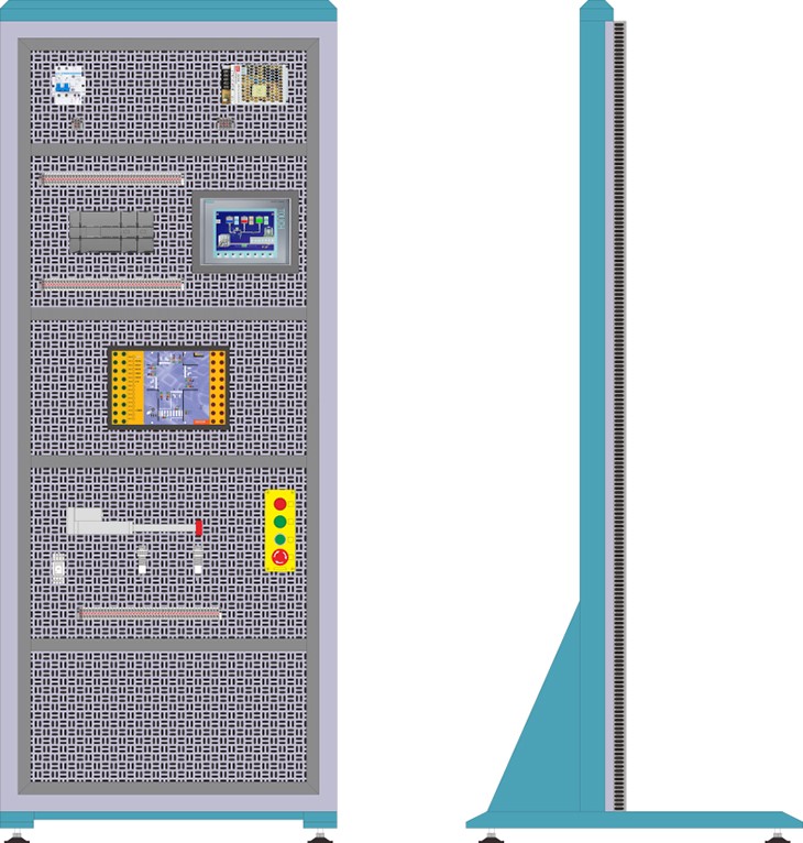 配套教學(xué)使用的對象,三層電梯、自動售貨機(jī)、機(jī)械手、自動門、天塔之光、全自動洗衣機(jī)、自動成型機(jī)、紅綠燈、裝配流水線、四路搶答器、音樂噴泉、軋鋼機(jī)、郵件分揀、運料小車、物料分揀、多級傳輸帶等模擬控制實訓(xùn),指示燈采用貼片雙色LED,面板采用3D立體彩色搭配設(shè)計,使模擬對象更直觀立體,開關(guān)采用自復(fù)位兼自鎖一體設(shè)計使實訓(xùn)能靈活實用,為適用各類PLC模塊具有輸入信號高低電平切換功能。