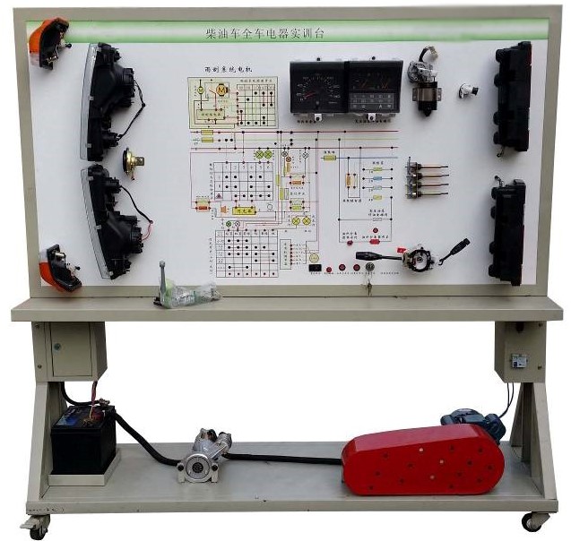 全車(chē)電路板試教板教學(xué)設(shè)備采用 全新東風(fēng)牽引車(chē)EQ2102 柴油機(jī)整車(chē)電器實(shí)物為基礎(chǔ),充分展示汽車(chē)儀表系統(tǒng)、燈光系統(tǒng)、雨刮系統(tǒng)、喇叭系統(tǒng)、發(fā)動(dòng)機(jī)電器系統(tǒng)、起動(dòng)系統(tǒng)和充電系統(tǒng)等汽車(chē)電器各系統(tǒng)的組成結(jié)構(gòu)和工作過(guò)程。