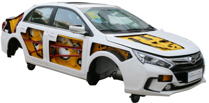3.設(shè)備由原車解剖的車身平臺和教學(xué)板組成,原車車身車殼安裝原車零部件,底部安裝4個腳輪,移動靈活,腳輪帶自鎖裝置。