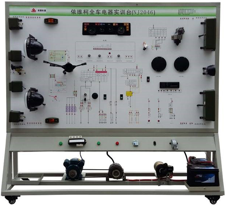 2.設備面板采用耐創(chuàng)擊、耐污染、防火、防潮的高級鋁塑板,表面經特殊工藝噴涂底漆處理;面板打印有永不褪色的彩色電路圖;學員可直觀對照電路圖和實物,認識和分析汽車整車電器各系統(tǒng)的工作原理。
