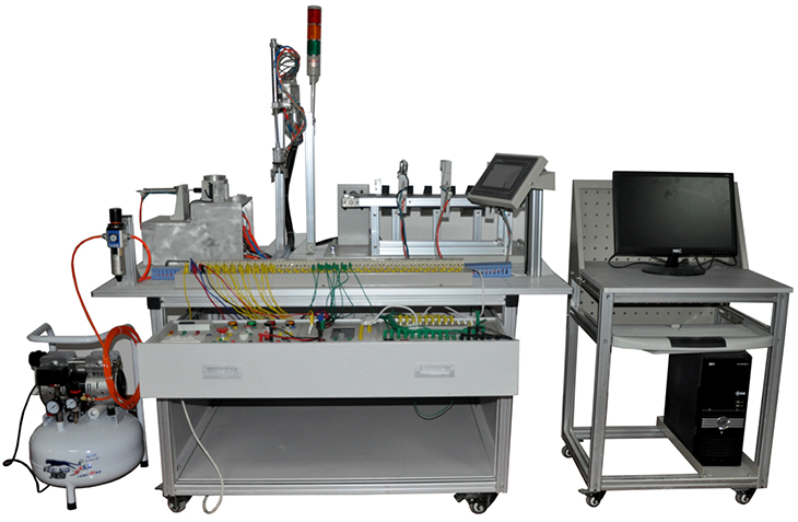 本設(shè)備主要包括實訓(xùn)臺架、典型的機(jī)電一體化設(shè)備的機(jī)械部件、PLC模塊、變頻器模塊、按鈕模塊、電源模塊、模擬生產(chǎn)設(shè)備實訓(xùn)模塊、接線端子排和各種傳感器等組成。整體結(jié)構(gòu)采用開放式和拆裝式,實訓(xùn)裝置用于機(jī)械部件組裝,可根據(jù)現(xiàn)有的機(jī)械部件組裝生產(chǎn)設(shè)備,也可添加機(jī)械部件組裝其他生產(chǎn)設(shè)備,使整個裝置能夠靈活的按教學(xué)或競賽要求組裝具有生產(chǎn)功能的機(jī)電一體化設(shè)備。