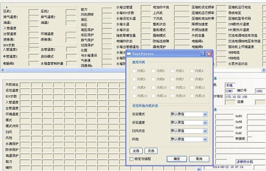 軟件可實現(xiàn)對內(nèi)機的控制,,可以對1-64臺內(nèi)機的狀態(tài)進行設(shè)定。