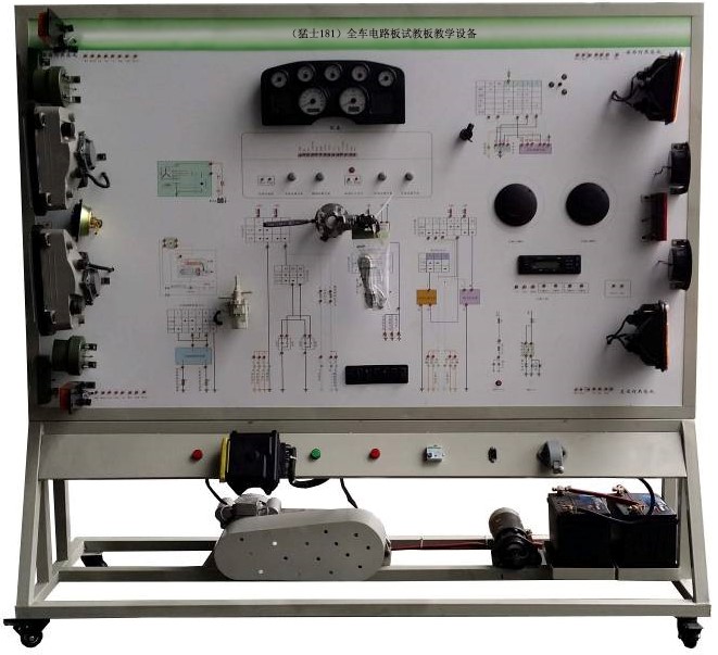 全車電路板試教板教學(xué)設(shè)備采用 全新 新款猛士181柴油機整車電器實物為基礎(chǔ),充分展示汽車儀表系統(tǒng)、燈光系統(tǒng)、雨刮系統(tǒng)、喇叭系統(tǒng)、發(fā)動機電器系統(tǒng)、起動系統(tǒng)和充電系統(tǒng)等汽車電器各系統(tǒng)的組成結(jié)構(gòu)和工作過程。