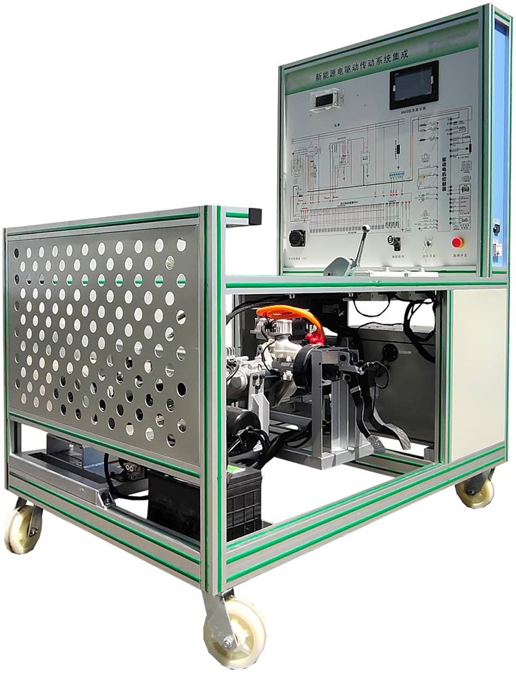 磷酸鐵鋰動(dòng)力電池包及管理系統(tǒng)(帶CAN通訊,含24單體電池,放電繼電器,充電繼電器,預(yù)充繼電器,預(yù)充電阻,霍爾電流傳感器,維修開關(guān),保險(xiǎn),充電接口,放電接口,低壓控制接口,動(dòng)力電池采集模塊,BMS電池管理系統(tǒng)主控模塊,7寸液晶顯示屏)、驅(qū)動(dòng)電機(jī)及運(yùn)行部分、電子油門總成、換擋機(jī)構(gòu)總成、儀表(帶CAN通訊)、變速箱、左右傳動(dòng)軸、左右前輪碟剎、磁粉制動(dòng)器(左右)、手動(dòng)張力控制器,助力器帶泵總成,真空泵總成、電動(dòng)真空助力剎車系統(tǒng)、真空壓力傳感器、真空罐總成、國標(biāo)充電插口與充電槍、車載充電機(jī)(帶CAN通訊)、DC-DC模塊、故障設(shè)置系統(tǒng)、輔助蓄電池(12V45AH)、蓄電池?cái)嚯婇_關(guān)、急停開關(guān)、上位機(jī)軟件及數(shù)據(jù)線(電機(jī)與電池控制單元)、一體化全鋁合金型材搭建的移動(dòng)臺(tái)架(1500×1000×1700mm ,帶自鎖腳輪裝置,帶安裝檢測(cè)端子的原理面板948×898mm)、故障考核系統(tǒng)、設(shè)備操作說明書。