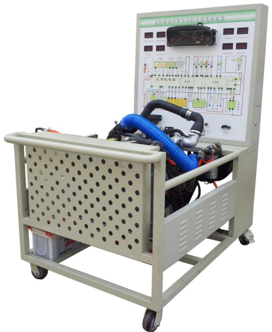 2.實訓臺面板采用4mm厚耐腐蝕、耐創(chuàng)擊、耐污染、防火、防潮的高級鋁塑板,表面經特殊工藝噴涂底漆處理;面板打印有永不褪色的彩色電路圖;學員可直觀對照電路圖和電控高壓共軌柴油發(fā)動機實物,認識和分析控制系統(tǒng)的工作原理。