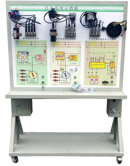 汽油發(fā)動(dòng)機(jī)點(diǎn)火系統(tǒng)保養(yǎng)模塊教具架該設(shè)備采用全新 三種典型(即:觸點(diǎn)式點(diǎn)火系統(tǒng)、霍爾式電子點(diǎn)火系統(tǒng)、無分電器分組點(diǎn)火系統(tǒng))的發(fā)動(dòng)機(jī)點(diǎn)火系統(tǒng)的真實(shí)部件,充分展示發(fā)動(dòng)機(jī)點(diǎn)火系統(tǒng)的組成結(jié)構(gòu)和工作過程。