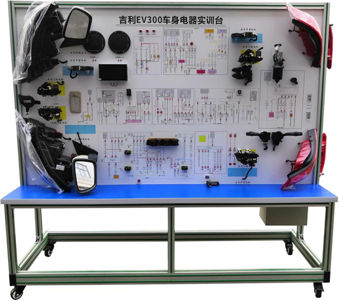 車身電器實訓(xùn)臺該設(shè)備采用(高速)純電動汽車車身電器系統(tǒng)實物為基礎(chǔ),充分展示純電動汽車儀表系統(tǒng)、燈光系統(tǒng)、雨刮系統(tǒng)、喇叭系統(tǒng)、低壓電源電器系統(tǒng)、電動車窗系統(tǒng)、電動門鎖、音響系統(tǒng)等低壓電器系統(tǒng)的組成結(jié)構(gòu)和工作過程。適合于各類院校對純電動車車身電器系統(tǒng)理論和維修實訓(xùn)的拆裝與維護(hù)、結(jié)構(gòu)與原理認(rèn)知、系統(tǒng)操作、功能動態(tài)演示、故障檢測與診斷教學(xué)需要。