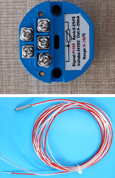 特點(diǎn):Pt100傳感器精度高,熱補(bǔ)償性較好,用于做標(biāo)準(zhǔn)校驗(yàn)用熱電阻。變送器部分供電DC24V,輸出4-20mA DC通信功能,用于測(cè)量加熱模塊內(nèi)部的溫度,是工業(yè)現(xiàn)場(chǎng)中常用的一溫度測(cè)量?jī)x表。精度為0.5級(jí)