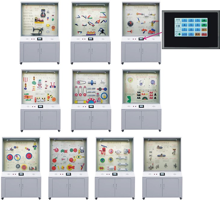根據(jù)全國(guó)技工學(xué)校機(jī)械類通用教材《機(jī)械基礎(chǔ)》示教陳列柜是一套電化教學(xué)設(shè)備。本陳列柜共分十個(gè)柜,陳列柜通過(guò)機(jī)械模型或?qū)嵨铮浜舷鄳?yīng)的圖文資料,形象地展示與解說(shuō)機(jī)械基礎(chǔ)的基本知識(shí),加強(qiáng)學(xué)生對(duì)通用機(jī)械基礎(chǔ)的類型、結(jié)構(gòu)特點(diǎn)及其設(shè)計(jì)的感性認(rèn)知,為進(jìn)一步學(xué)習(xí)機(jī)械基礎(chǔ)奠定基礎(chǔ)。