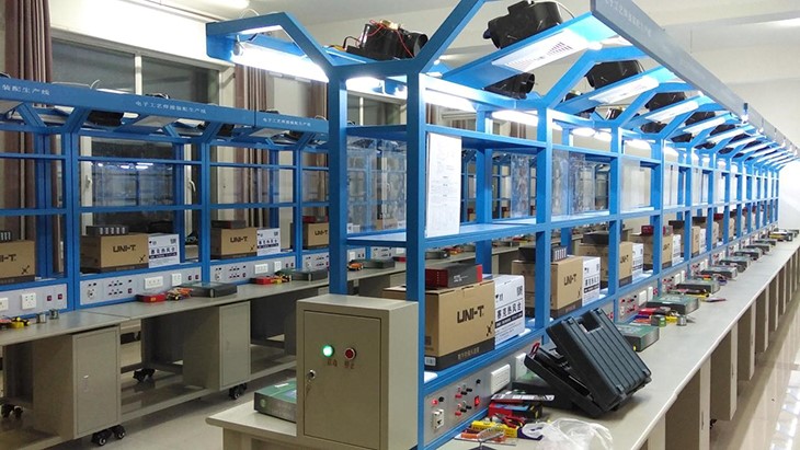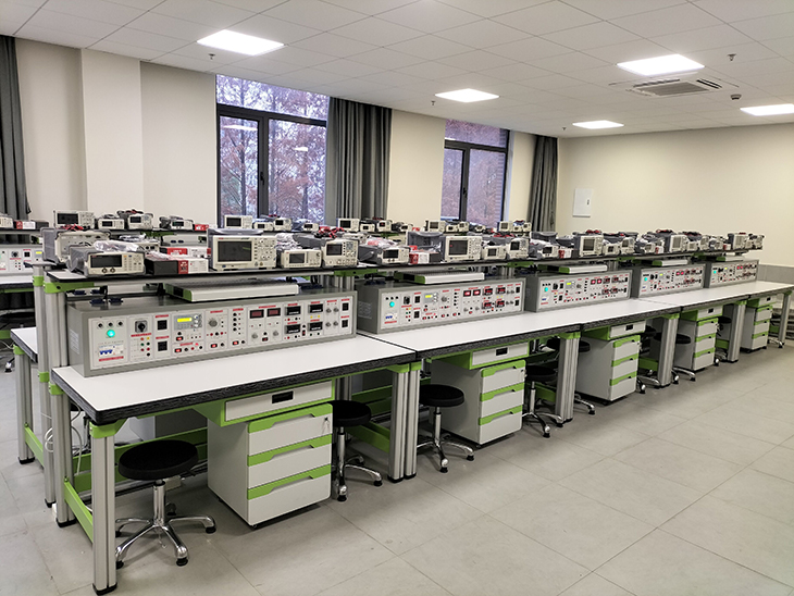 電子工藝實習室是供學生焊接練習、電子產(chǎn)品組裝調(diào)試操作的實驗室,學生進行焊接操作。配備的儀器設(shè)備主要有直流穩(wěn)壓電源、示波器、萬用表、工具箱等。為了改善實習室的空氣環(huán)境衛(wèi)生,還專門配備了抽風系統(tǒng)。開設(shè)的課程有《電子工藝實習》、《電工實習》,包括電路元件的選配、電子產(chǎn)品的安裝、焊接和性能測試等環(huán)節(jié)。電子工藝實驗實訓室設(shè)備主要面向汽車、機械、電信、電氣、計算機、經(jīng)濟、管理等學院的學生,培養(yǎng)學生的動手實踐能力、分析問題和解決問題的能力以及創(chuàng)新精神。