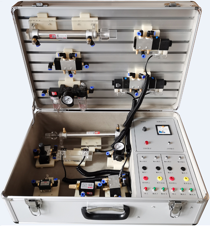 氣動液壓綜合實驗臺面向機(jī)電一體化、機(jī)械制造及自動化、機(jī)電一體化、電氣自動化等自動化類專業(yè)學(xué)生的《液壓與氣動技術(shù)》課程的教學(xué)與實訓(xùn)、同時提供面向企業(yè)的氣動技術(shù)項目培訓(xùn)。該裝置集理論實踐于一體,在產(chǎn)品結(jié)構(gòu)上由空壓機(jī)、實訓(xùn)臺、氣動元件、電氣元件組成,涵蓋氣動基本的執(zhí)行元件、氣閥元件及基本的氣動搭接回路實訓(xùn)的內(nèi)容,可使學(xué)生了解和掌握氣動元件的選型、應(yīng)用、設(shè)定、調(diào)節(jié),氣動基本回路的原理。幫助學(xué)生提高學(xué)習(xí)氣動基礎(chǔ)知識的興趣,方便教師課堂教學(xué),增加專業(yè)特色。實訓(xùn)室主要實訓(xùn)項目:氣動基本回路實驗實訓(xùn)、繼電器控制的氣動系統(tǒng)實驗實訓(xùn)、可編程序控制器(PLC)電氣控制實驗實訓(xùn)、機(jī)-電-氣一體化控制實驗實訓(xùn)、氣動系統(tǒng)創(chuàng)新設(shè)計組裝實訓(xùn)。 通過實驗實訓(xùn),讓學(xué)生更好地理解和掌握氣壓件結(jié)構(gòu)、形狀、作用和工作原理方面的知識,掌握常用的氣動回路作用、工作原理和使安裝調(diào)試方法,理論結(jié)合實際,提高動手能力,為將來從事與自動化專業(yè)相關(guān)的設(shè)計、制造、維修等工作打下良好的基礎(chǔ)。上海碩博弘揚(yáng)大國工匠精神, 發(fā)展職業(yè)教育,應(yīng)用教學(xué)設(shè)備,為企業(yè)培養(yǎng)高技能人才,液壓實驗臺是以高校科研成果產(chǎn)業(yè)化為背景,由教授、高級工程技術(shù)人員、高級管理人員為主體組成的,集研發(fā)、生產(chǎn)銷售于一體的企業(yè),專業(yè)提供液壓試驗臺,氣動實驗臺,液壓拆裝實訓(xùn)設(shè)備,氣動液壓綜合實驗臺。 液壓PLC控制實訓(xùn)裝置(工業(yè)型)、液壓元件拆裝實訓(xùn)裝置、透明液壓與氣動PLC控制綜合實訓(xùn)裝置、透明液壓與氣動PLC控制綜合實訓(xùn)裝置(組態(tài)軟件控制)、透明液壓PLC控制實訓(xùn)裝置(外帶泵站)、透明液壓PLC控制實訓(xùn)裝置(內(nèi)帶泵站)、透明液壓傳動PLC實訓(xùn)裝置(外帶泵站、組態(tài)軟件控制)、透明液壓傳動PLC實訓(xùn)裝置(內(nèi)帶泵站、組態(tài)軟件控制)、透明液壓PLC控制實訓(xùn)裝置(挖掘機(jī)實訓(xùn)臺)、透明液壓傳動演示系統(tǒng)、四合一透明液壓傳動演示系統(tǒng)、氣動PLC控制實訓(xùn)裝置、氣動PLC控制實訓(xùn)裝置(組態(tài)軟件控制)、液壓與氣動PLC控制綜合實訓(xùn)裝置(工業(yè)型)、液壓與氣動PLC控制綜合實訓(xùn)裝置(工業(yè)型組態(tài)軟件控制)、液壓PLC控制實訓(xùn)裝置(工業(yè)型)、液壓PLC控制實訓(xùn)裝置(工業(yè)型帶組態(tài)軟件控制)、液壓挖掘機(jī)PLC控制實訓(xùn)裝置(工業(yè)型)、液壓起重機(jī)PLC控制實訓(xùn)裝置(工業(yè)型)。